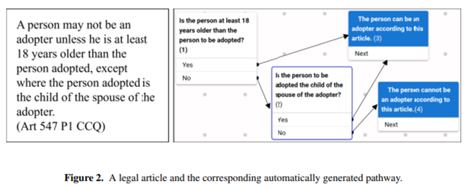 Traditionally, encoding complex legislative text into a structured, rule-based representation – referred to as “pathways” of criteria and conclusions – is a labor-intensive and costly task. Yet this structured data is the foundation for tools like JusticeBot, which help non-lawyers understand how laws apply to them. In this study, researchers used GPT-4 to automate the extraction of pathways from 40 articles of the Civil Code of Quebec.
