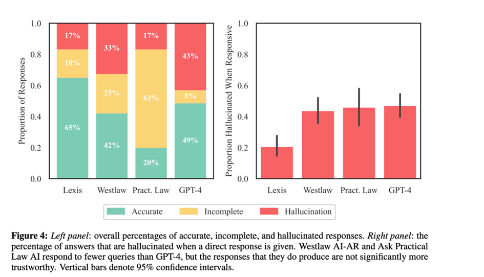 In sharp contrast, the second study – assessing the reliability of leading AI legal research tools – adopted a more cautious stance. It found that, despite bold claims from vendors, these tools continue to suffer from persistent and problematic hallucinations, placing a heavy burden of supervision on legal professionals.